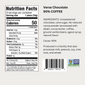 UNSWEETENED CHOCOLATE, CANE SUGAR, FAT REDUCED COCOA POWDER (PROCESSED WITH ALKALI), COCOA BUTTER, COFFEE, GROUND VANILLA BEANS, AGAVE SYRUP, NATURAL FLAVOR.