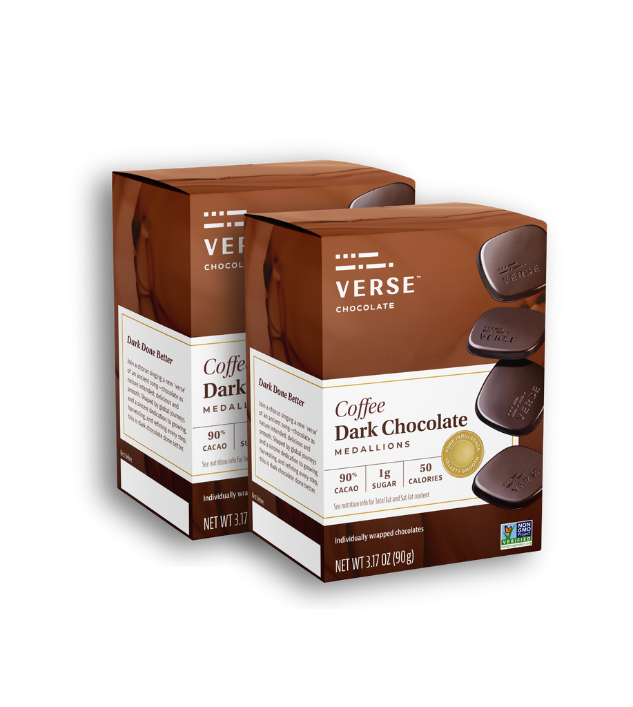 Let this be the month to replace less forgiving habits with delicious and healthier ones. The easiest way to start a new healthy habit is to subscribe to one. Just click a button, make a selection and wait for the healthy chocolate habit to begin. We recommend one to three Verse medallions per day, so a package a week should keep you stocked up on Verse!